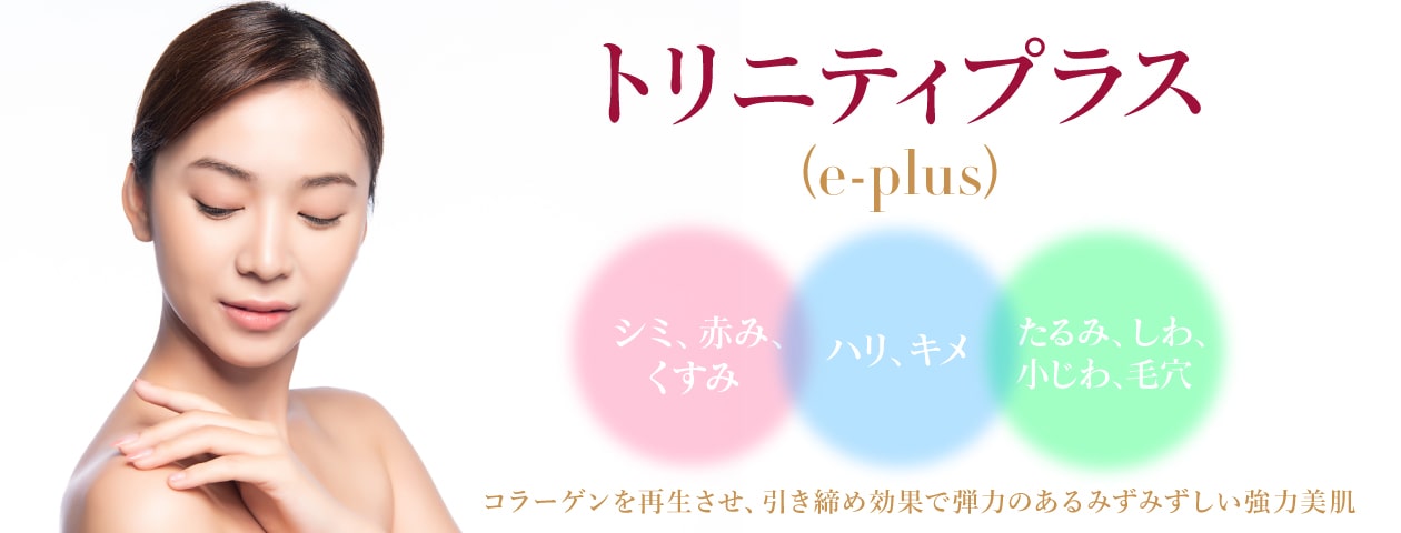 また単体治療に加え、お肌のお悩みの状態から3つの治療の最適なものを組み合わせて行う事によってより美肌に近づきます。この3つを同日に照射して、肌の最下層から最上層までの照射を行う治療法をelos Plusによるトリニティ・プラスと呼びます。