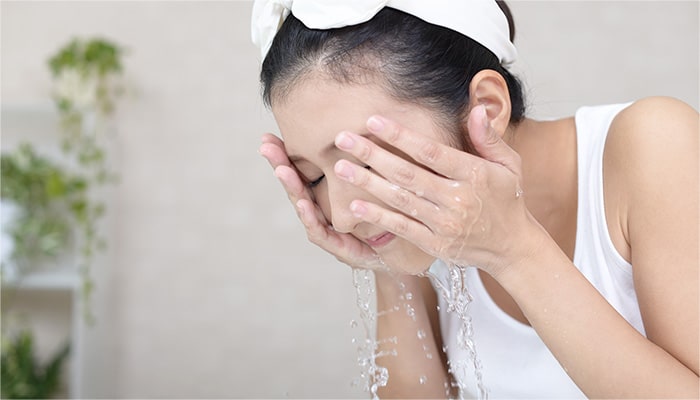 日焼け止め、メイクをなさっている方は洗顔で落としていただきます。