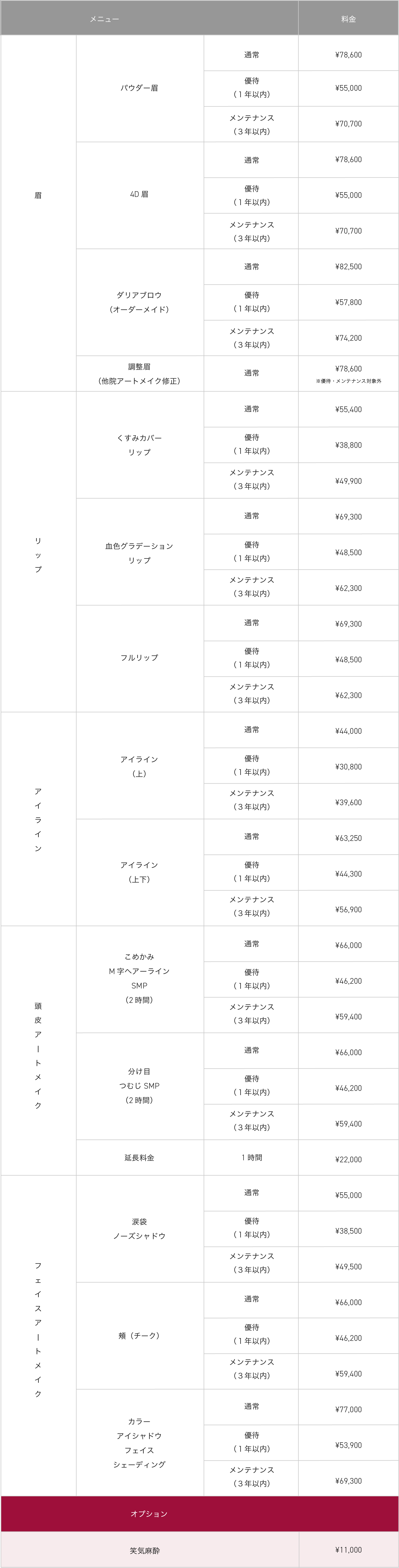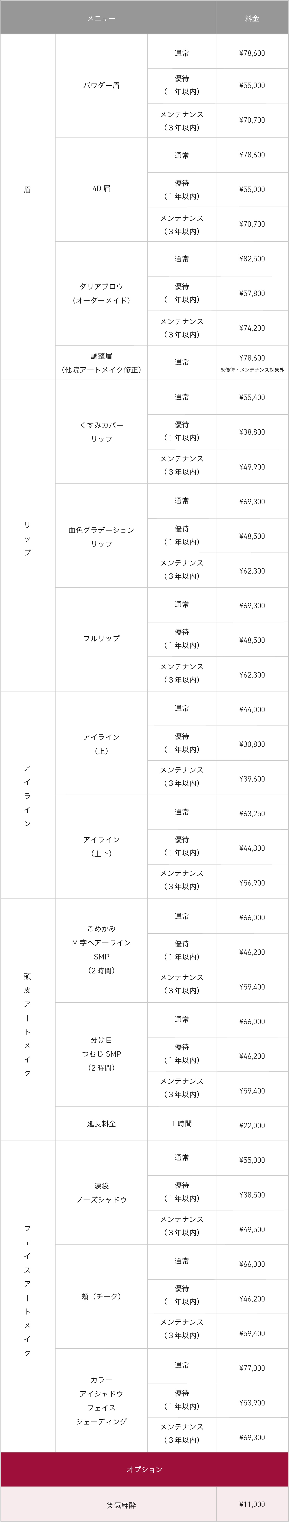 ※ 当院はワンアーティストにて施術を行う為、追加指名料はございません
