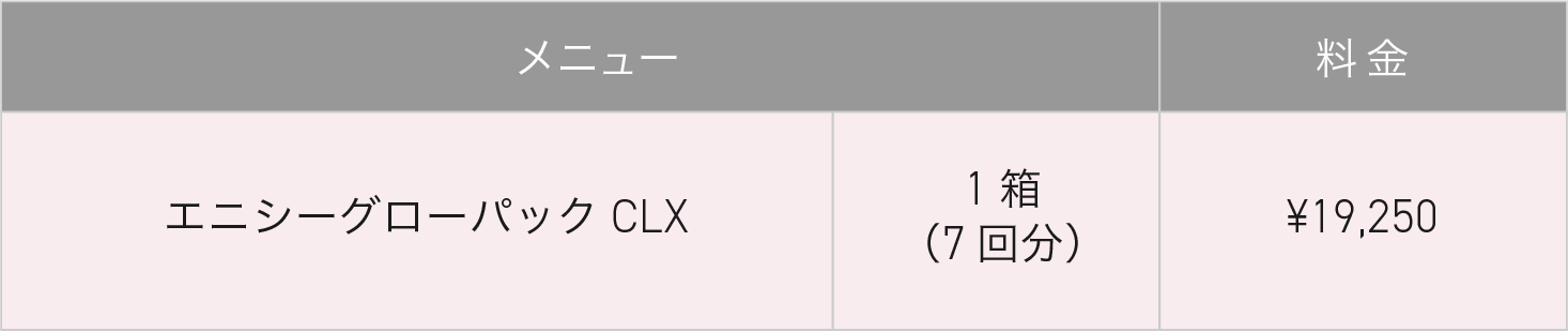 エニシーグローパックCLXは、従来の人気モデル「CL+」をベースに、肌再生に必要な美容成分を贅沢に配合した医療機関専売の炭酸ガスパックです。炭酸ガスによる肌の自浄作用サポートに加え、再生医療分野でも注目される成分を組み合わせることで、ハリ、ツヤ、透明感のすべてにアプローチ。ワンランク上の仕上がりを追求するプロ仕様のセルフケアアイテムです。