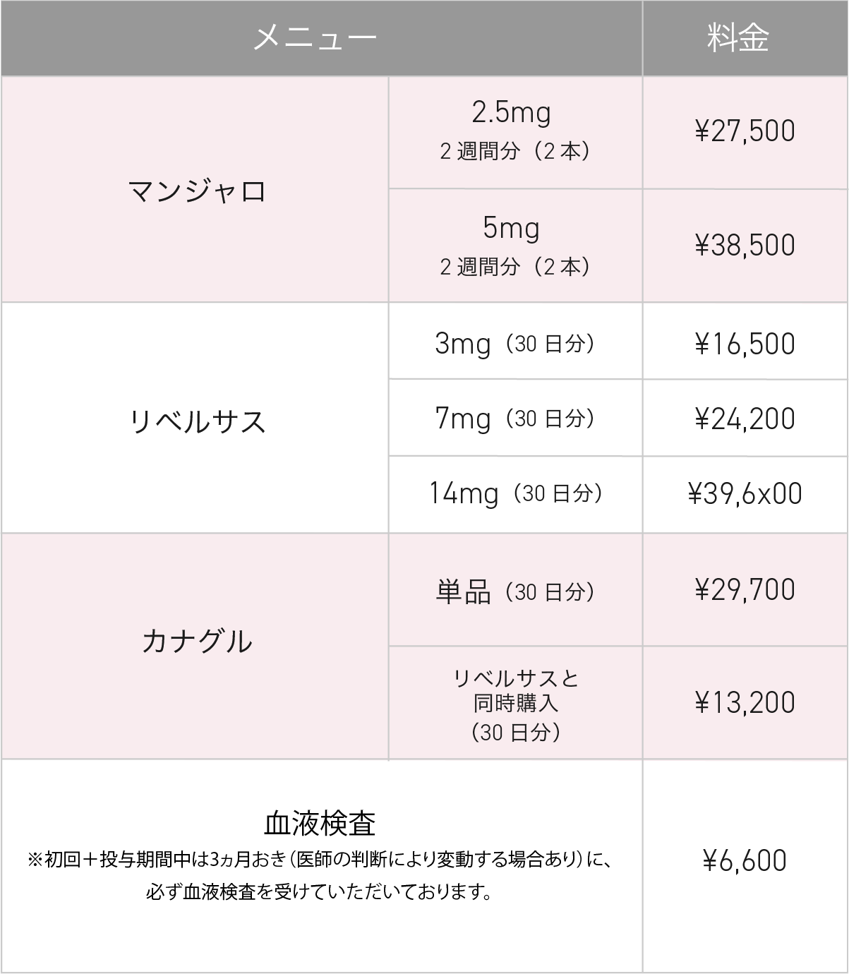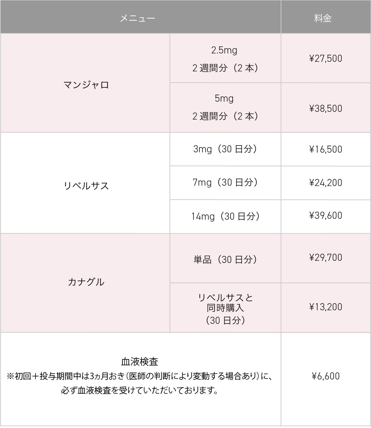 当院では処方にあたって、初回の方に加えて投与期間中の方は3ヵ月おきに血液検査を行わせていただきます。(医師の判断により変動する場合あり)(別途料金)