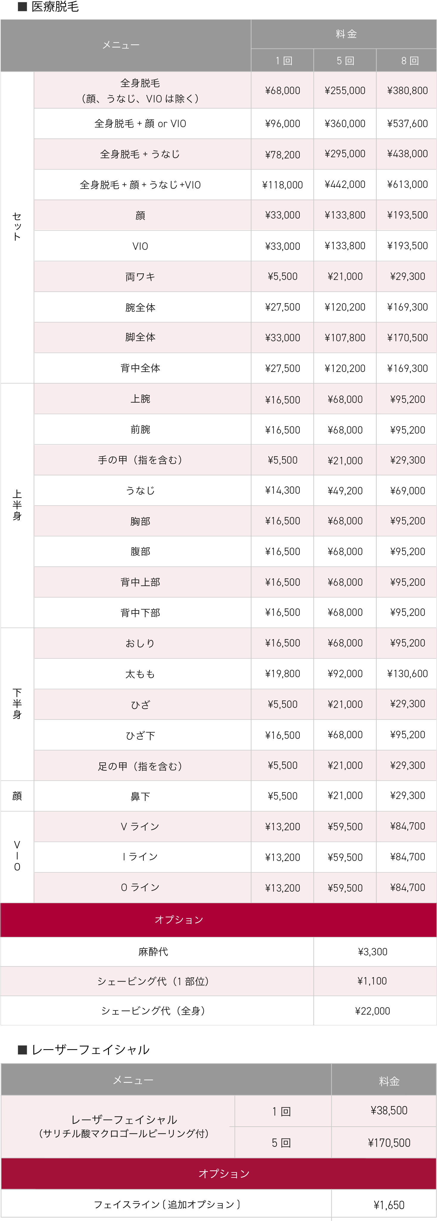 こちらの価格はレディース医療脱毛の価格となります。メンズ医療脱毛の価格はこちらをご確認下さい。