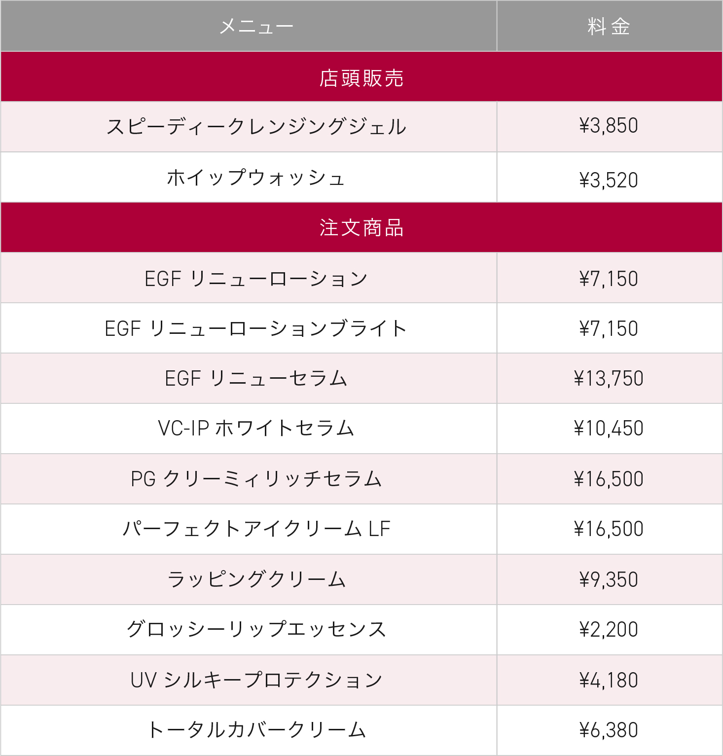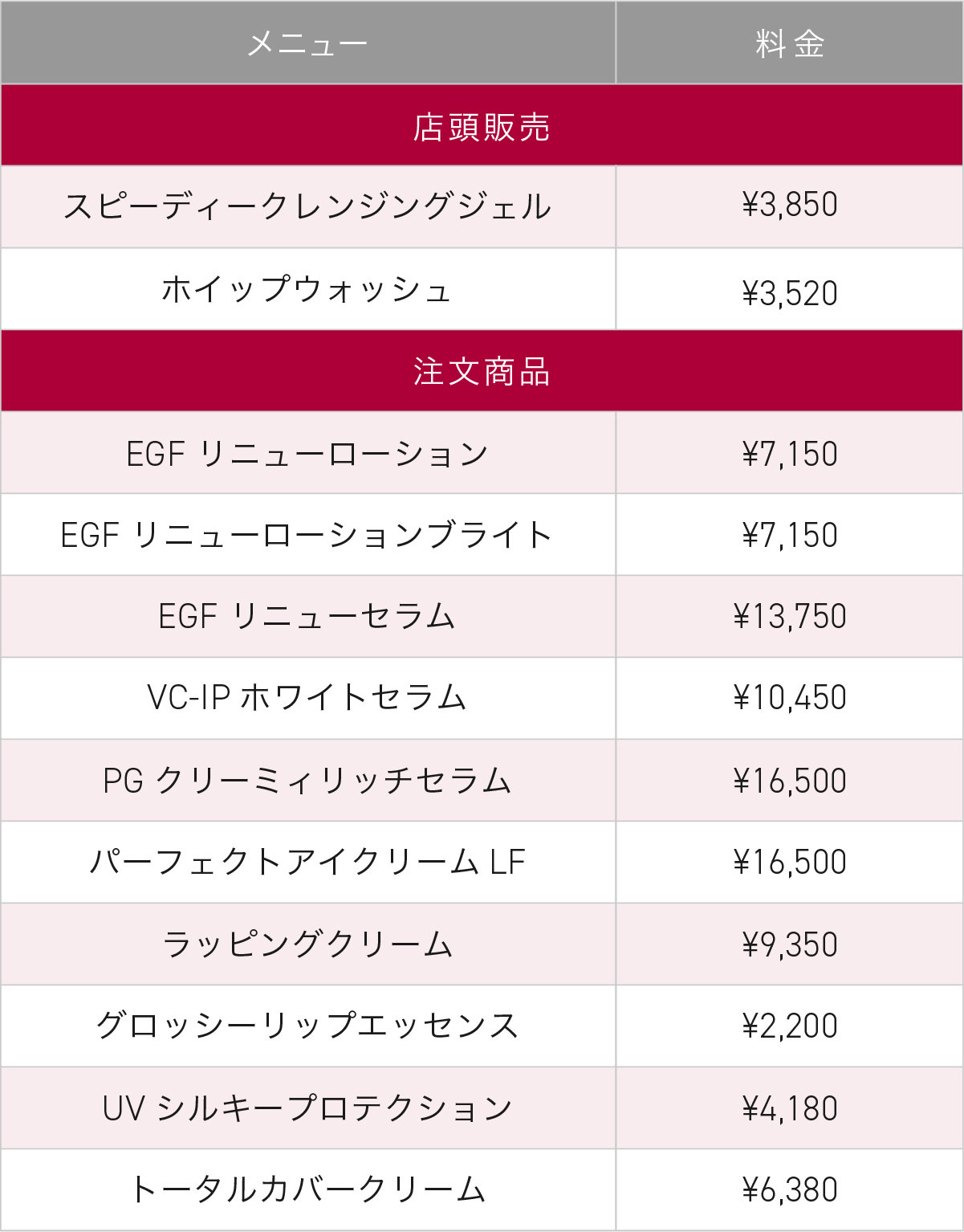 ダリア銀座スキンクリニックでは「スピーディークレンジングジェル」「ホイップウォッシュ」以外の商品は注文制となりますので、ご希望の方はLINEまたはお電話にてご連絡ください。