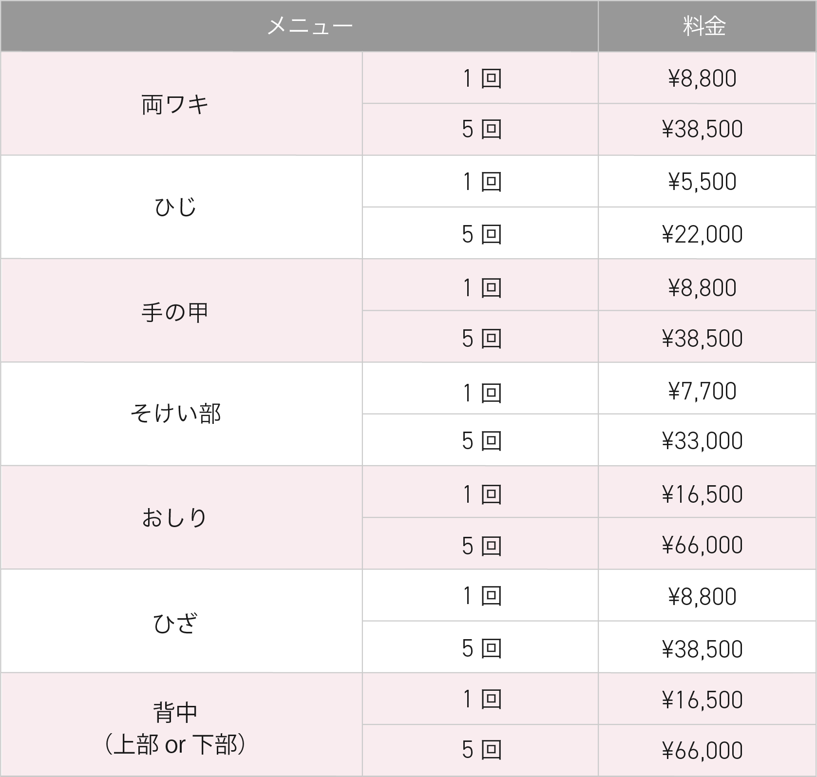 ワキ、ひじ、ひざ、おしり、Vラインなど、ボディの黒ずみ改善に効果的です。