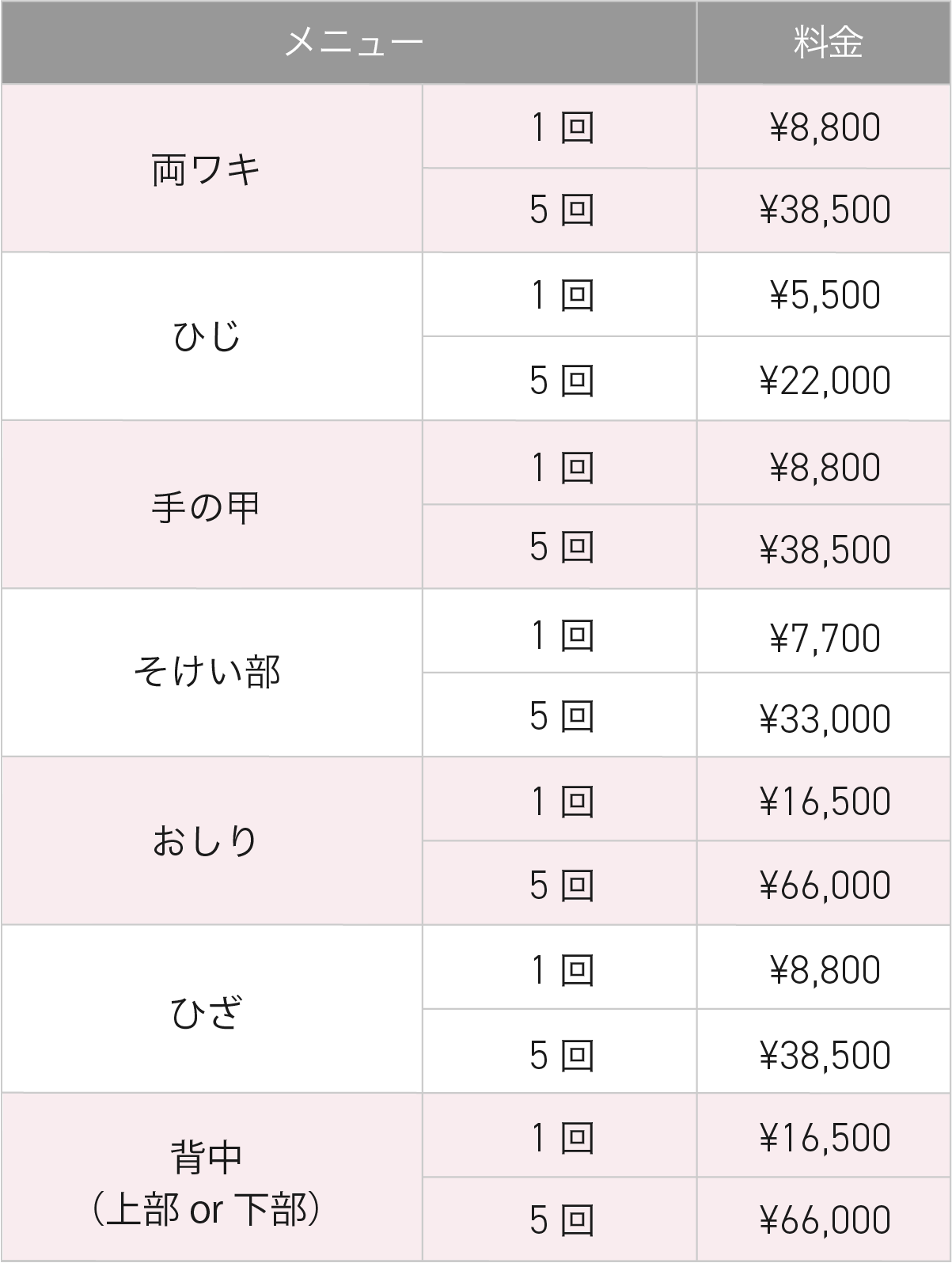 ワキ、ひじ、ひざ、おしり、Vラインなど、ボディの黒ずみ改善に効果的です。