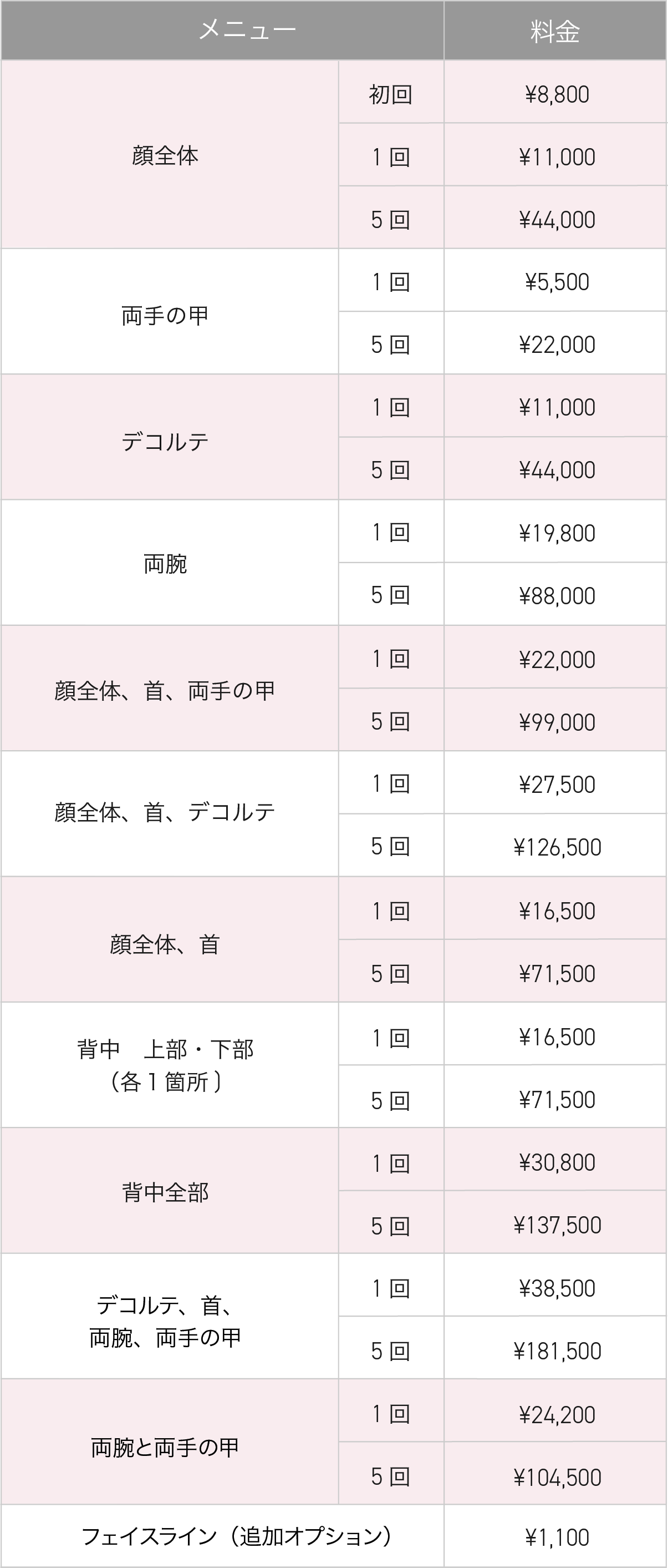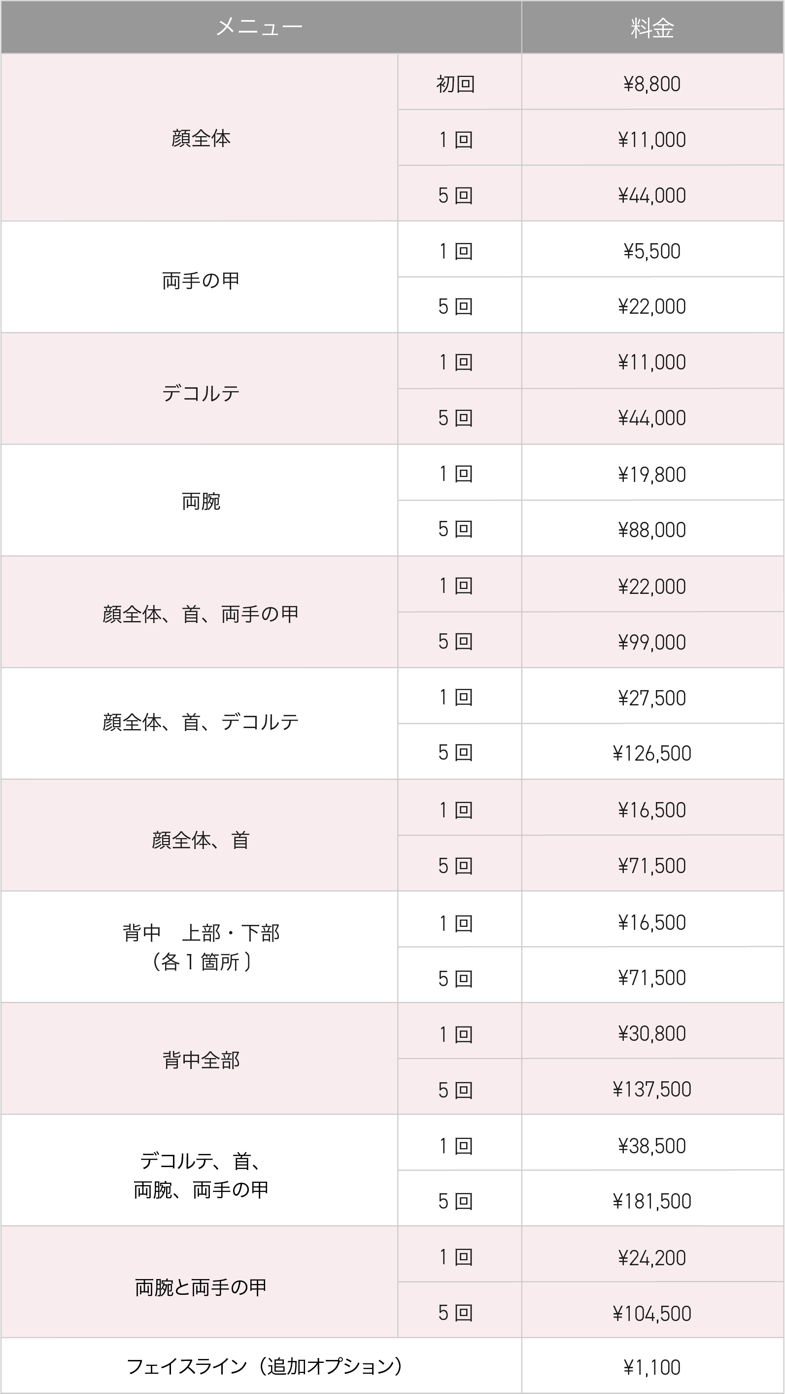 施術適応部位が広く、顔以外にも首、デコルテ、手の甲の他、背中や腕など身体の部位でも対応可能です。