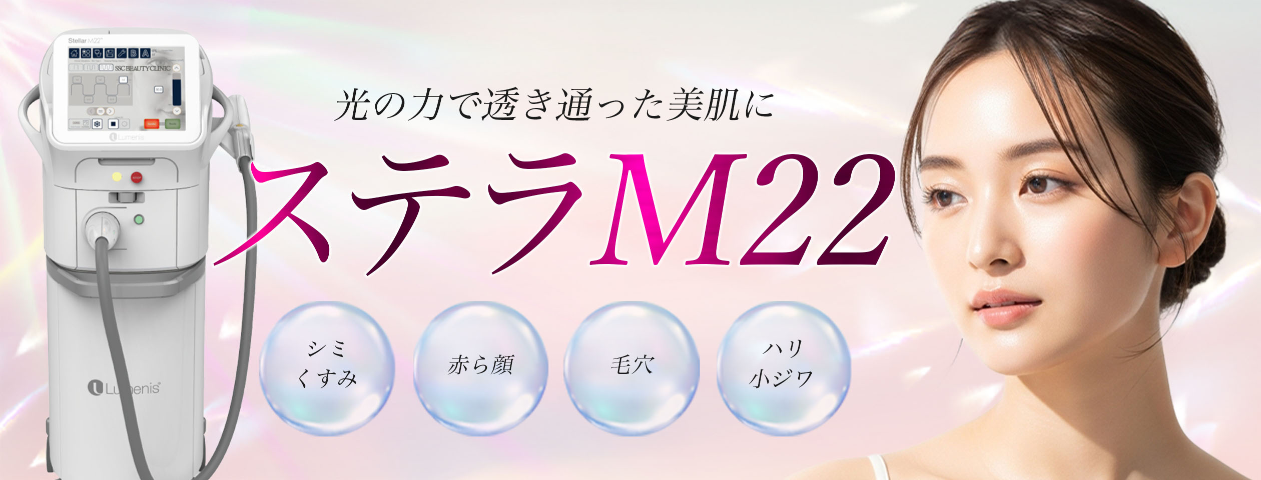 Stella M22は、Lumenis(ルミナス)社が開発した「フォトフェイシャル/IPL」治療機器で、2021年2月に日本で薬事承認を取得しました。