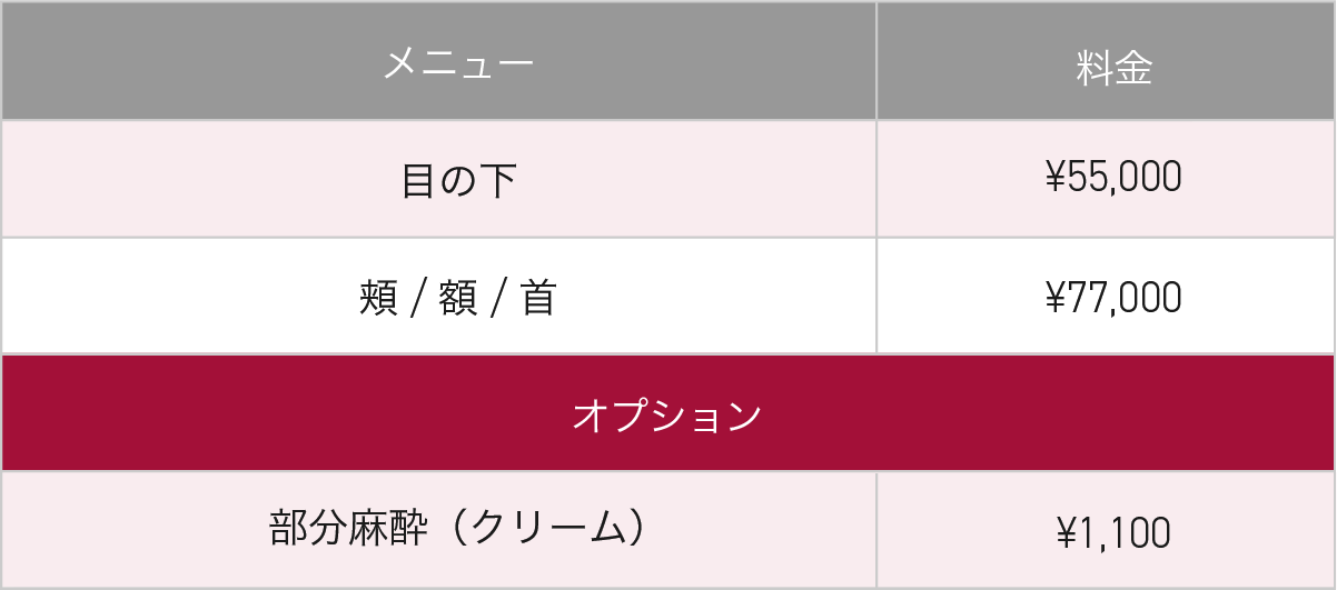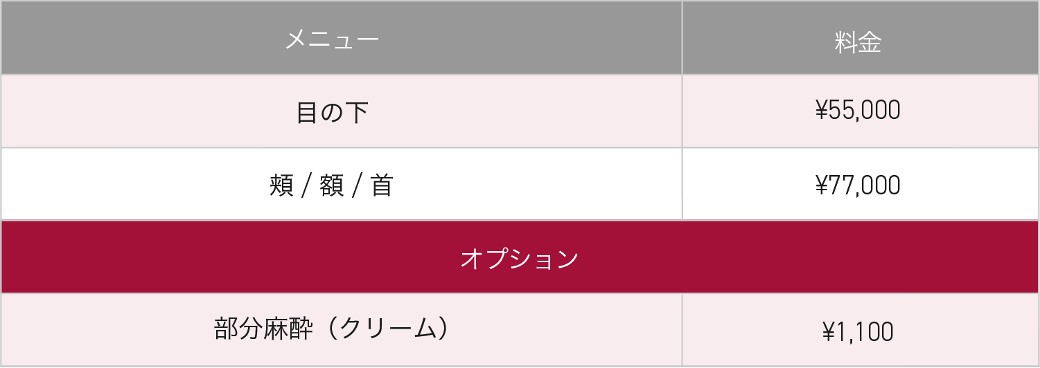 今まで治療が難しいとされてきた、目の下の毛細血管や脂肪などの皮下組織が薄い皮膚から透けて見えているタイプの「青クマ」や、たるみによる「影グマ」に効果的な治療法です。